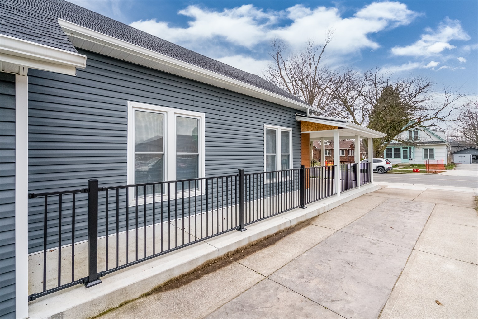 This property offers parking for two vehicles, one parked in front of the other, providing convenience for families or groups traveling together.