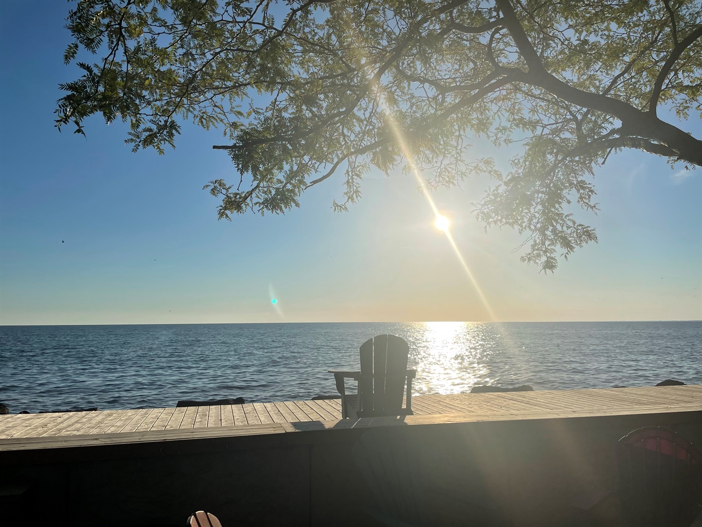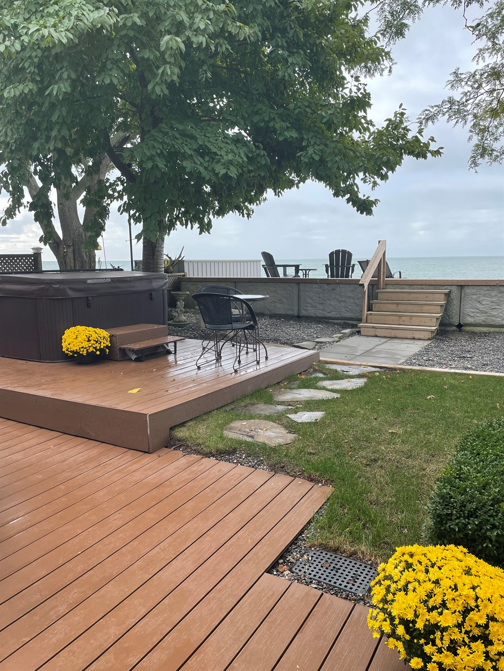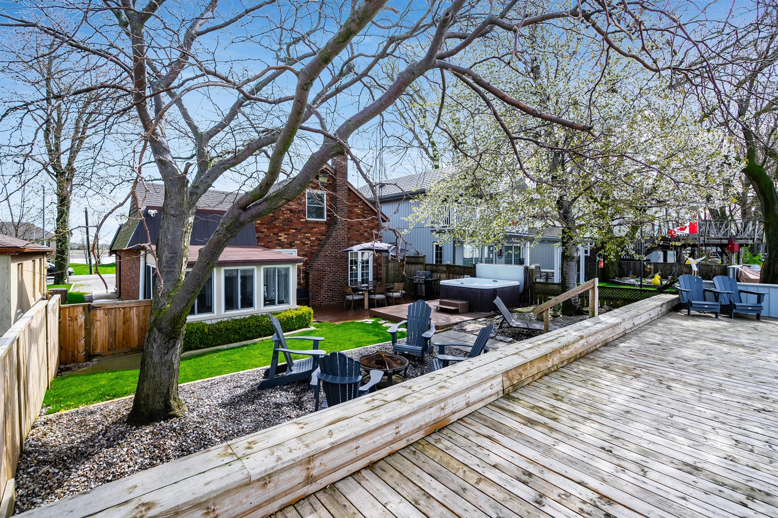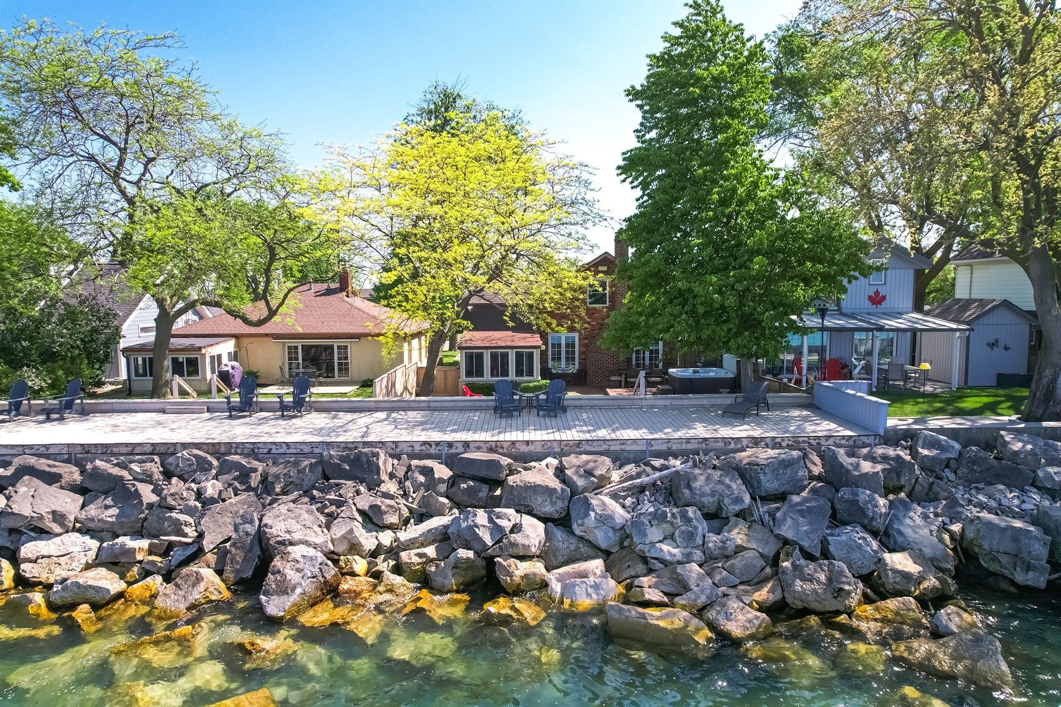 From the dining room, step into the sunroom, which opens up to a beautiful backyard overlooking Lake Erie. This outdoor space is designed for relaxation and gatherings. Whether you're dining al fresco at the outdoor table, grilling on the natural gas BBQ, or stargazing around the fire pit, you'll be surrounded by stunning lake views and tranquility. The hot tub offers another layer of relaxation, especially as you watch the sunset across the water.