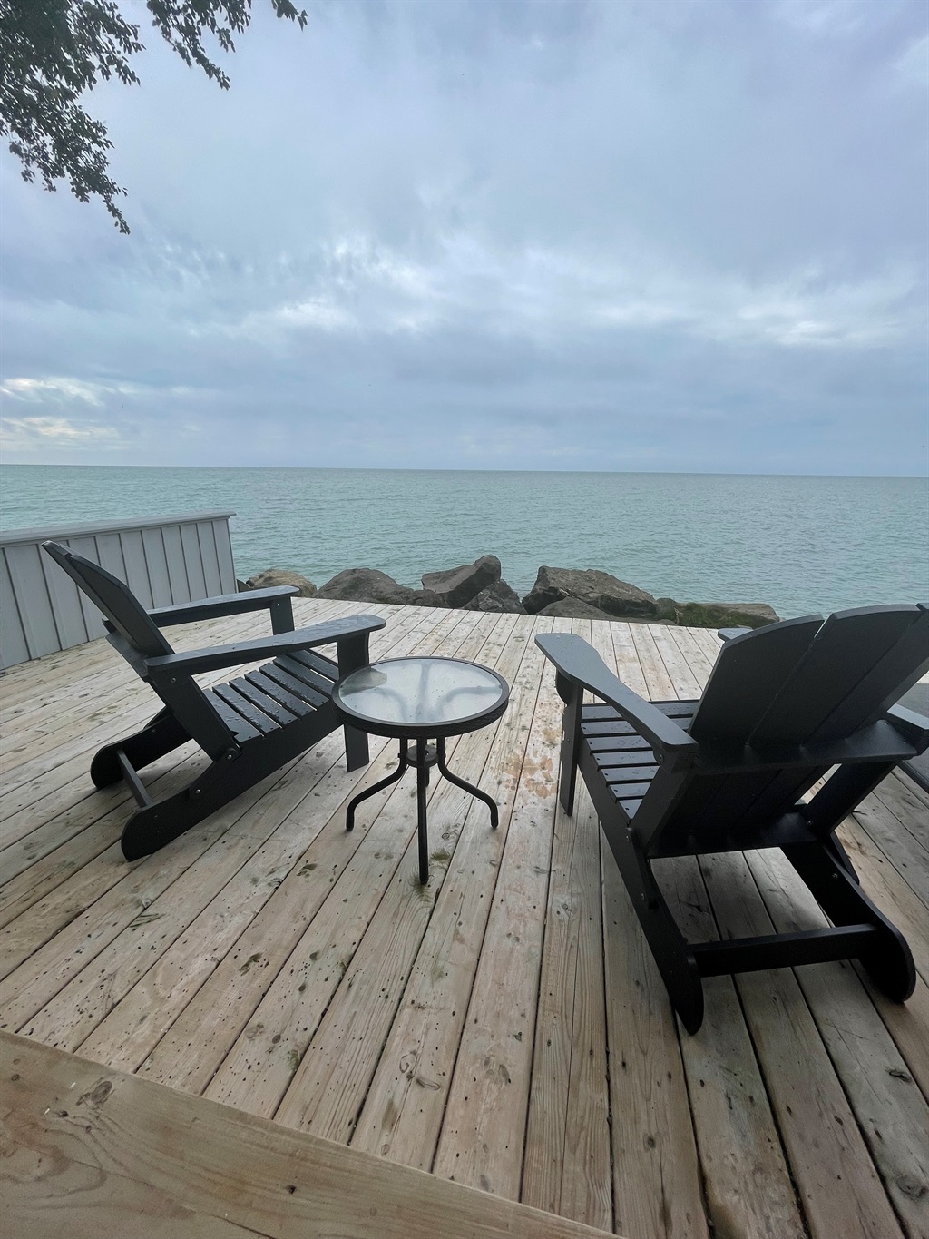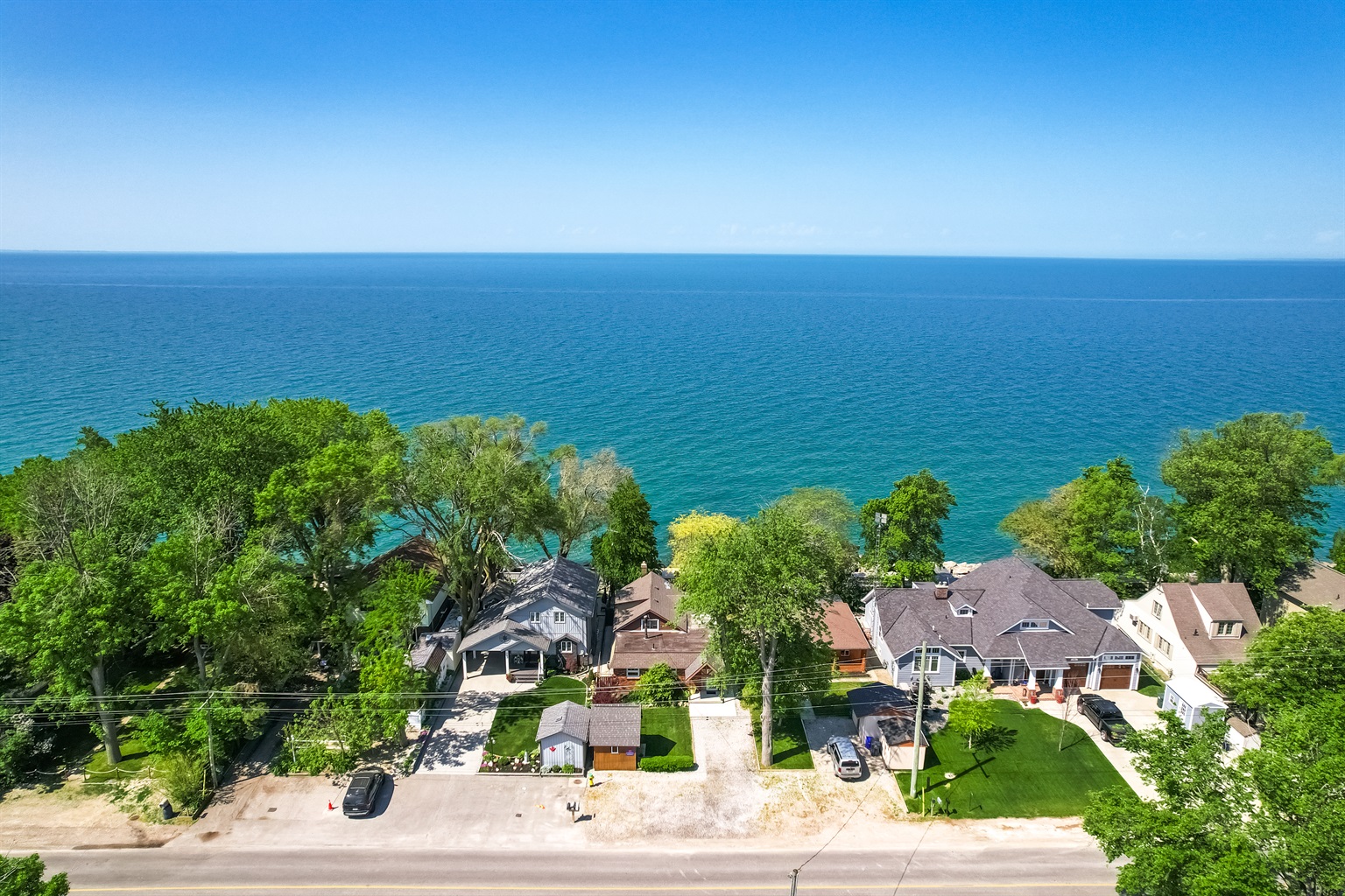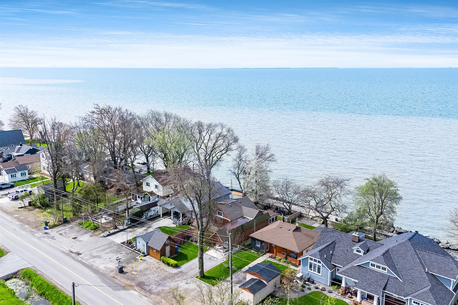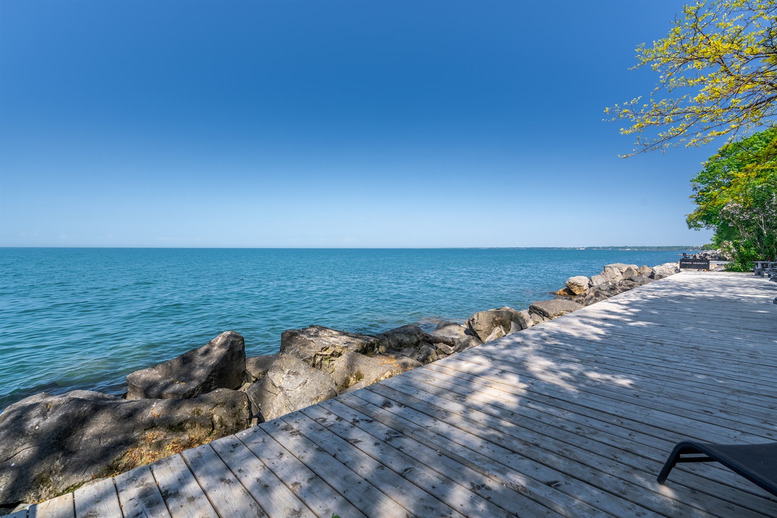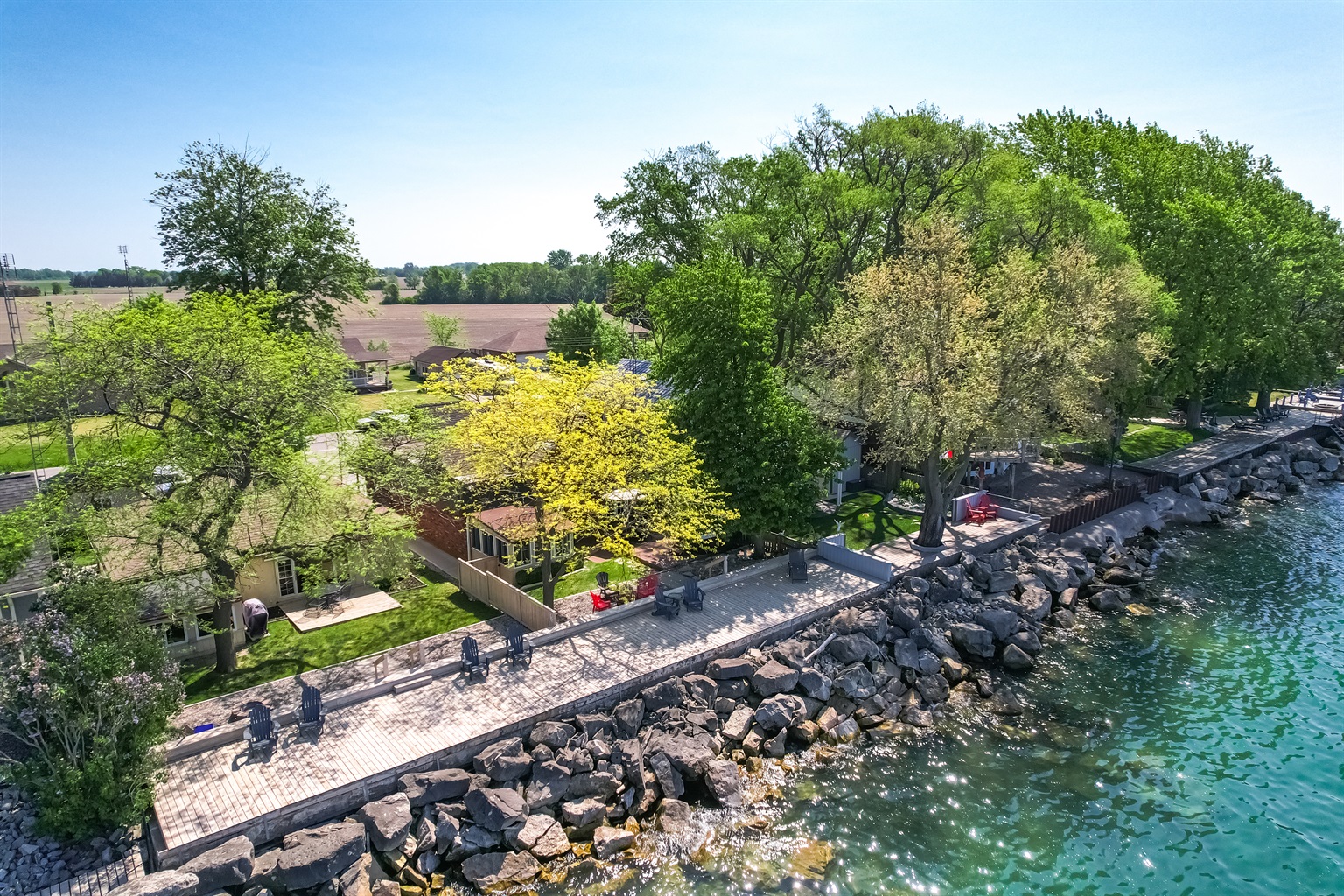 From the dining room, step into the sunroom, which opens up to a beautiful backyard overlooking Lake Erie. This outdoor space is designed for relaxation and gatherings. Whether you're dining al fresco at the outdoor table, grilling on the natural gas BBQ, or stargazing around the fire pit, you'll be surrounded by stunning lake views and tranquility. The hot tub offers another layer of relaxation, especially as you watch the sunset across the water.