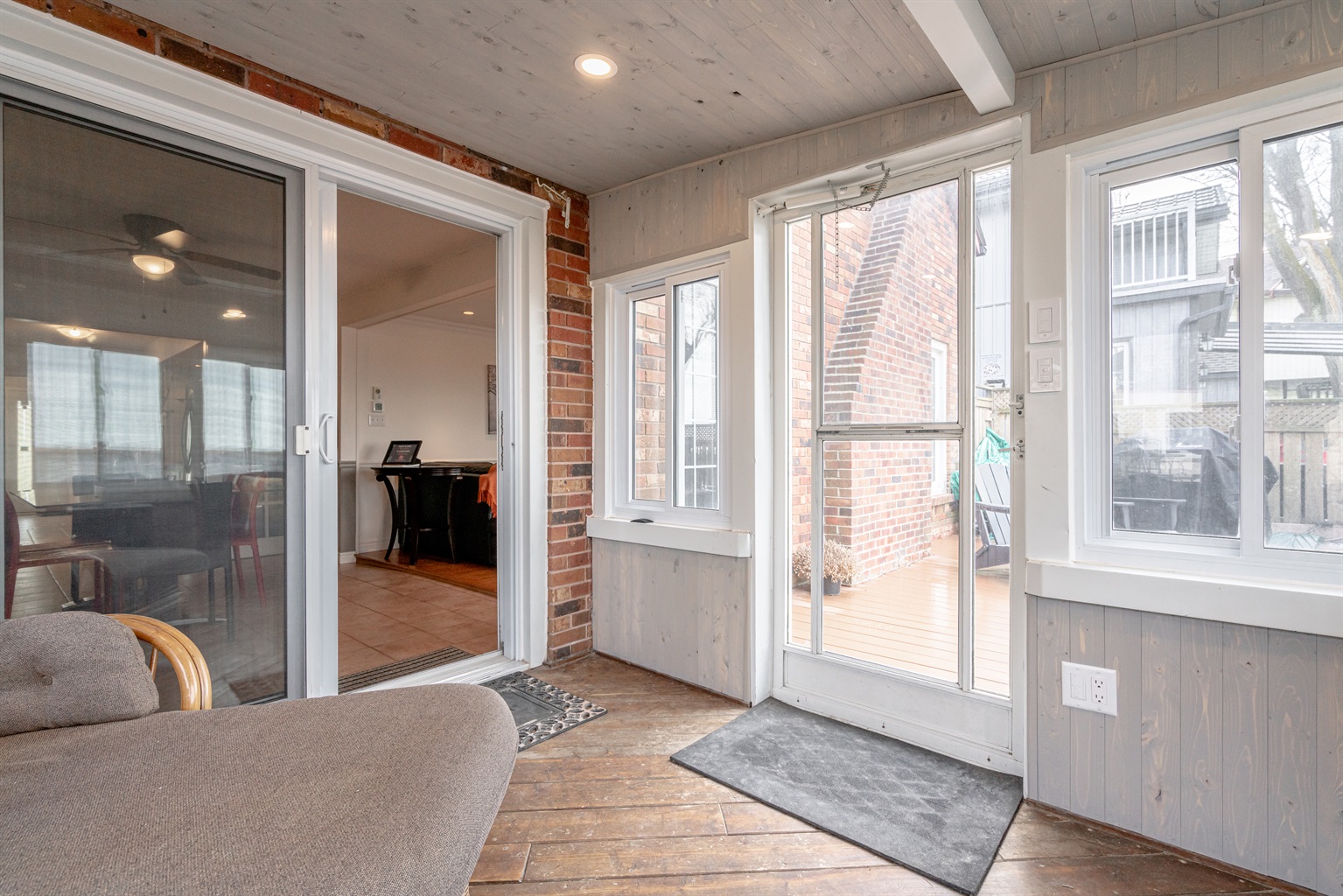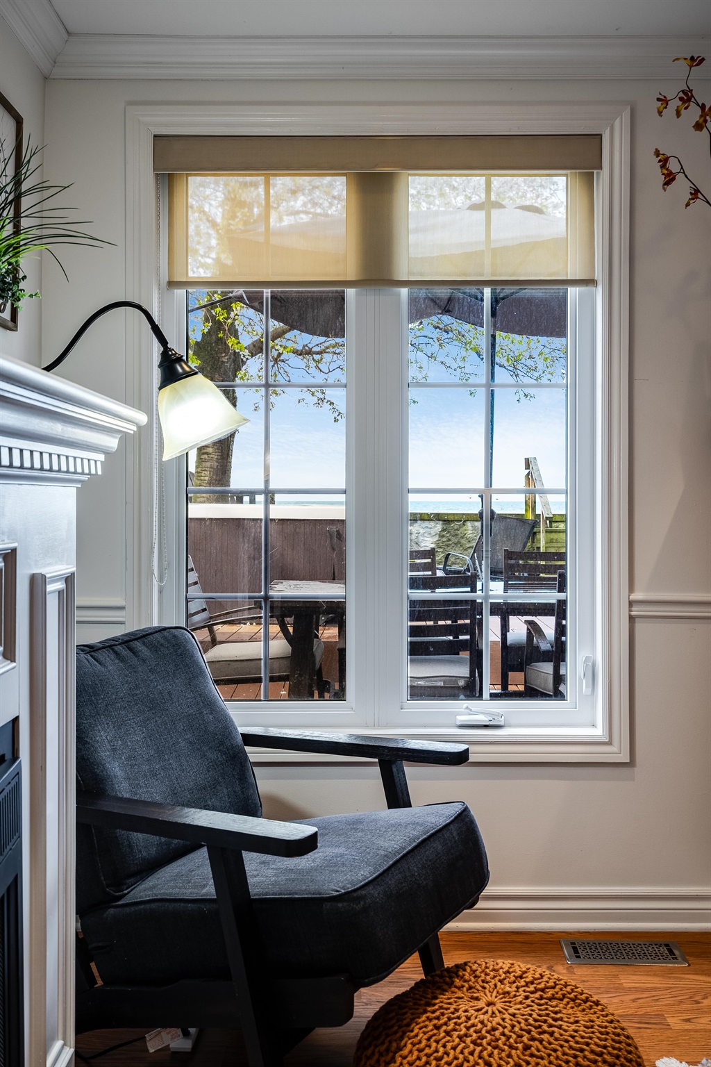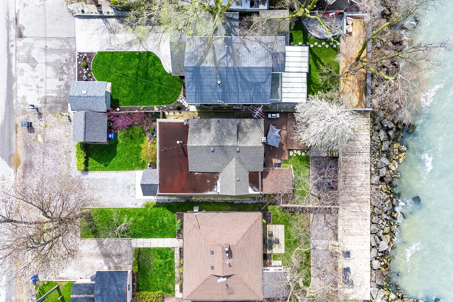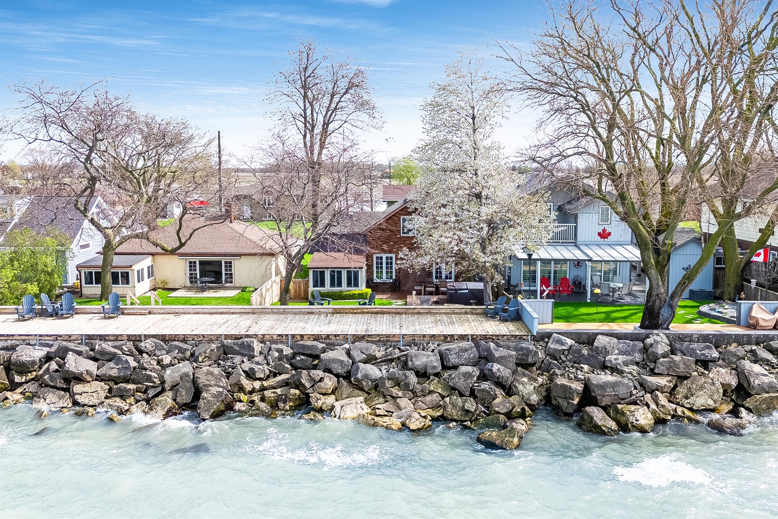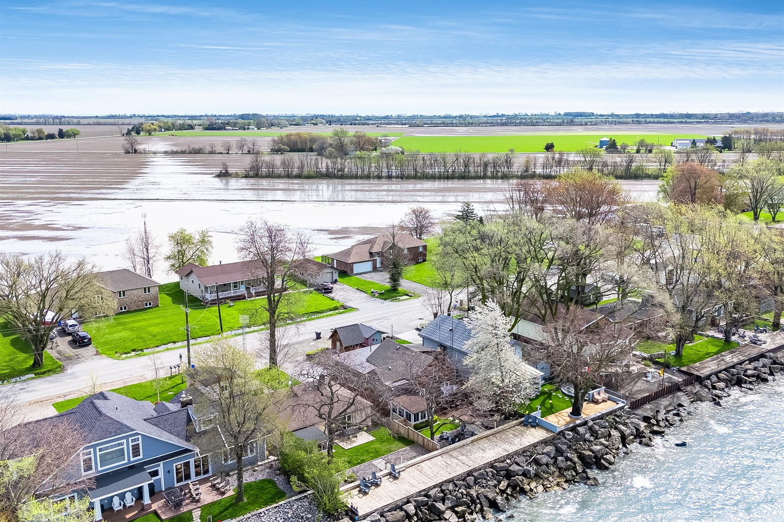 From the dining room, step into the sunroom, which opens up to a beautiful backyard overlooking Lake Erie. This outdoor space is designed for relaxation and gatherings. Whether you're dining al fresco at the outdoor table, grilling on the natural gas BBQ, or stargazing around the fire pit, you'll be surrounded by stunning lake views and tranquility. The hot tub offers another layer of relaxation, especially as you watch the sunset across the water.