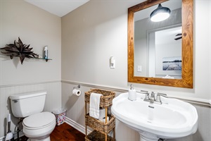Upstairs, two additional bedrooms, each with a queen-size bed, ensure everyone has a comfortable place to rest. There's also a second full bathroom with a shower to accommodate your group. The layout and thoughtful design of The KingFisher make it ideal for families or small groups of friends.
