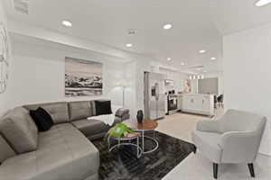The main floor welcomes you with an inviting open-concept layout, where a spacious dining area, a fully equipped kitchen boasting high-end stainless steel appliances, and a comfortable living room area await. Whether you're enjoying a home-cooked meal with loved ones or lounging in front of the big-screen TV, you'll find every moment spent in this inviting space to be a delight.