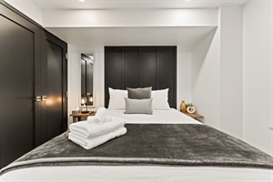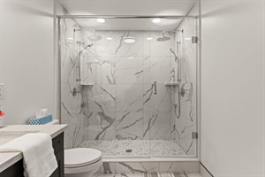 Spanning three levels, our condo boasts three beautifully appointed bedrooms, ensuring plenty of space for you and your companions to unwind in comfort. As you ascend to the third floor, prepare to be mesmerized by the magnificent views of the lake that greet you from every angle. Here, the master bedroom awaits, complete with a lavish king-size bed, a large-screen TV, and an ensuite full bathroom featuring a double vanity and a double walk-in rain shower, all complemented by sweeping vistas of the shimmering waters below.