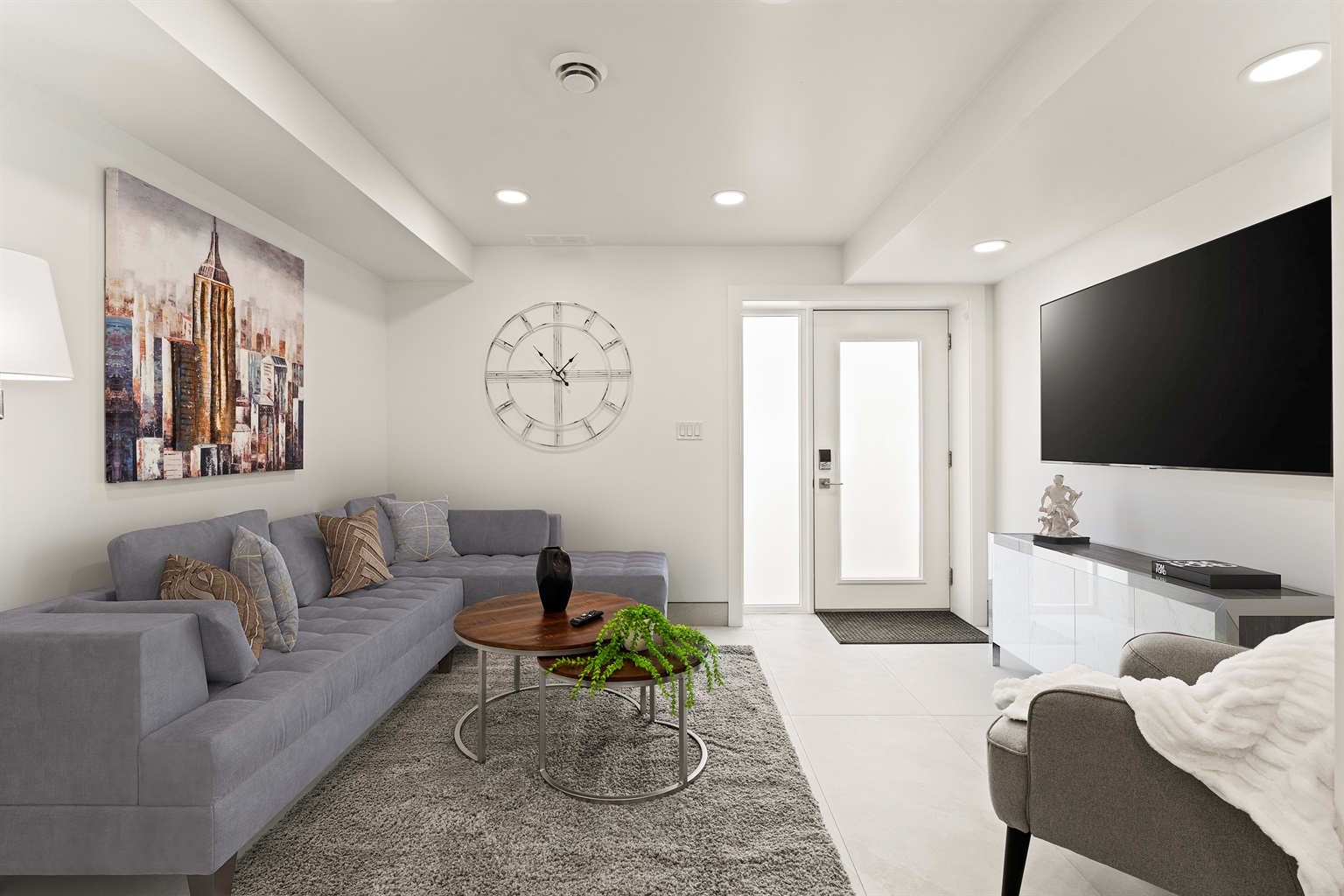The main floor welcomes you with an inviting open-concept layout, where a spacious dining area, a fully equipped kitchen boasting high-end stainless steel appliances, and a comfortable living room area await. Whether you're enjoying a home-cooked meal with loved ones or lounging in front of the big-screen TV, you'll find every moment spent in this inviting space to be a delight.