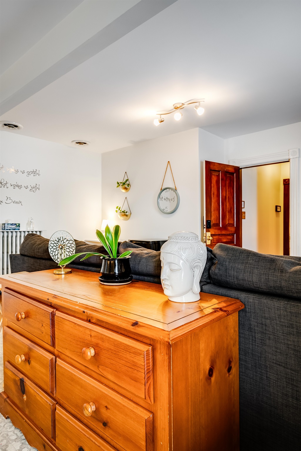 Upon entering our lobby, you'll be greeted by a welcoming space that seamlessly flows into the dining and living areas. A beautiful wooden staircase leads you to the second floor, where you'll find our four elegant suites, including The Miracle Suite. This charming setup offers a cozy and inviting atmosphere from the moment you step inside, guiding you effortlessly to the heart of your stay.