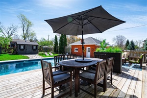 Step outside onto the expansive deck, where a saltwater pool (CLOSED, opening May 1st 2026) and beautifully landscaped gardens await. Bask in the sun by the pool or fire up the natural gas BBQ for a fun summer cookout. This serene outdoor oasis is perfect for unwinding and enjoying the peaceful surroundings.